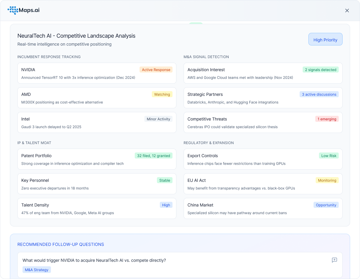 Evaluate competitor moats via IP and talent density.